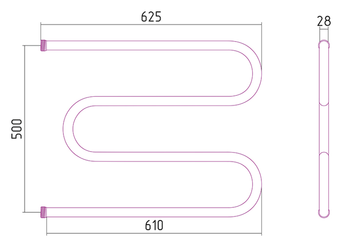 —Полотенцесушитель водяной Стилье М-образный 500х650 резь сгон 1*